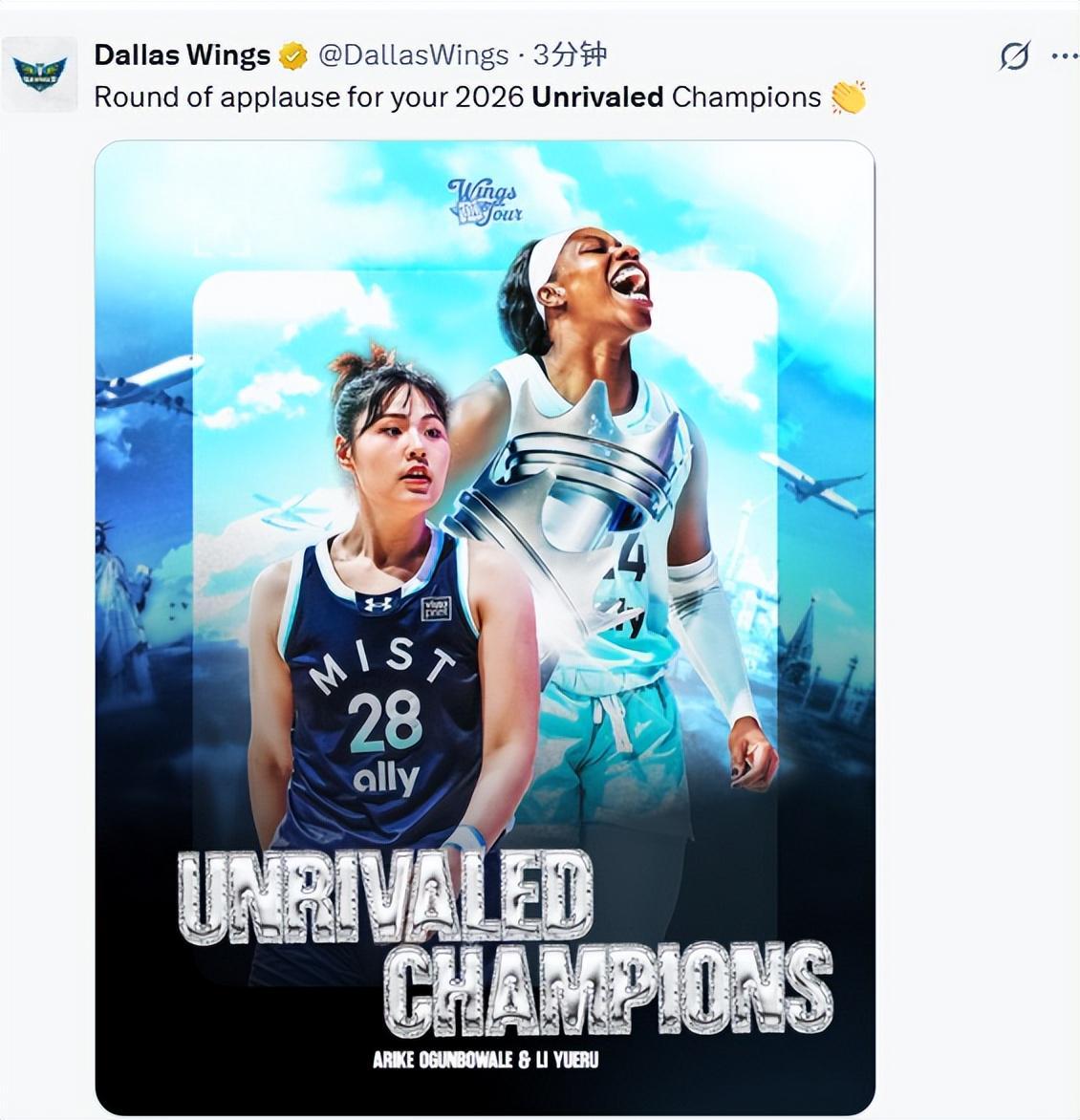 李月汝本赛季为迷雾队出战了13场比赛,在场均5.2分钟的上场时间里,得到4.3分2.6篮板。李月汝此前在WNBA效力的达拉斯飞翼队也向李月汝表示祝贺,恭喜她获得年UNRIVALED联赛冠军。